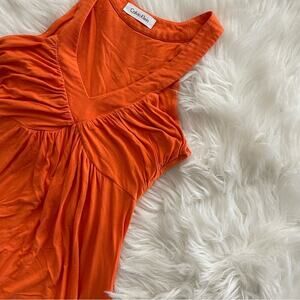 Calvin Klein Ember Orange V Neck Jersey A Line Swing Dress 2