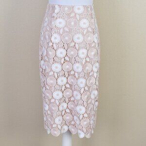 Calvin Klein Embroidered Floral Crochet Lace Pencil Skirt.