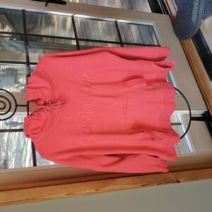 EUC...Cozy pink hoodie with Calvin Klein logo. Features a front pocket and drawstring hood. Check out all pics for details and approximate measurements.