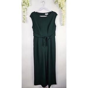 Calvin Klein Emerald Green Sleeveless Wide Leg Belted Jumpsuit Cropped Size 10