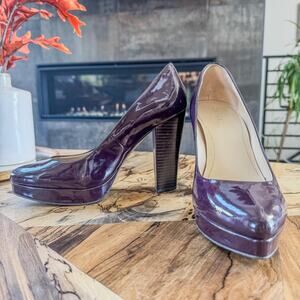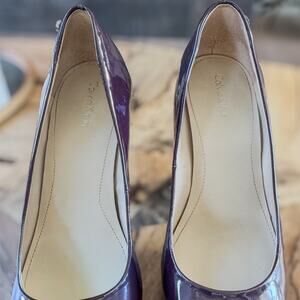 Calvin Klein Emmy Two-Toned Patent Leather Platform Heels in Plum, Women's 8.5W