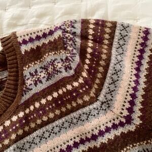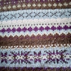 * Colors: Brown, Cream, and Blue in a Fair Isle pattern