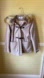 Like new. Faux fur hooded wool coat with zipper, snap and buckle closure. Color is Oat Twill with a gold quilted lining. The faux fur on the hood is removable. It has two front pockets and two side pockets and one small pocket on the inside.