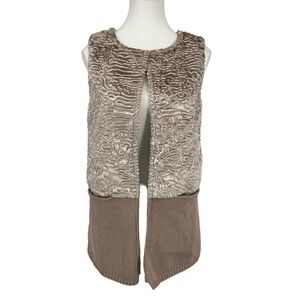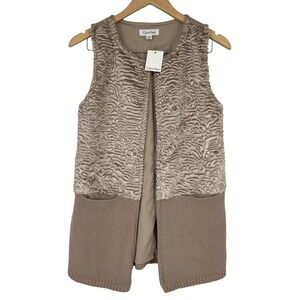 Calvin Klein Faux Fur Knit Sweater Vest Latte Beige Small