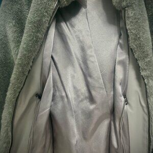 Luxurious and versatile Calvin Klein faux fur jacket in a gorgeous grey tone. Though labeled Petite Small, it fits comfortably on an adult woman (I’m 5’6” and wore it as a Small).
