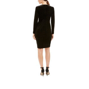 Faux Wrap - V Neckline. Accentuated waistline Rucked with Gold tone Brooch - Buckle Hidden back zipper Long Sleeve Top lined Easy fit - stretchy fabric Velvet construction Approx., length 39.5" 18" pit to pit Elegant and Chic you can have it in one click! Calvin Klein Women's Dress makes it perfect for any occasions: good for work, daily wear, travel, night out, etc.