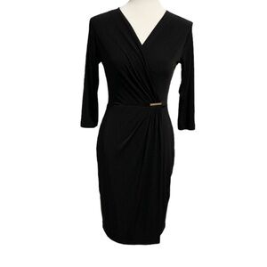Calvin Klein Faux Wrap Dress Black With Gold Logo Buckle Size 6