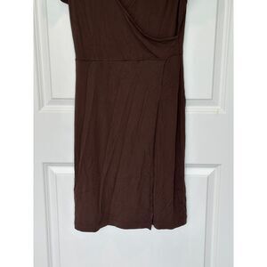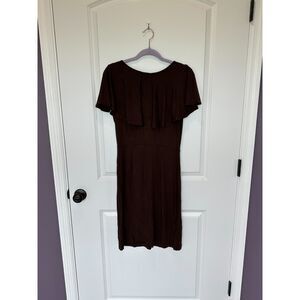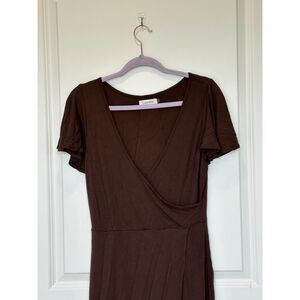 Calvin Klein Faux Wrap Flutter Sleeve Brown Dress Size 6