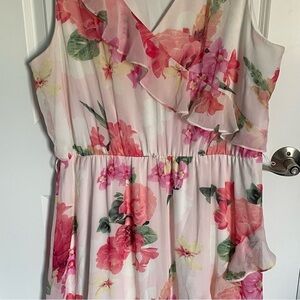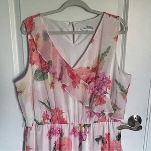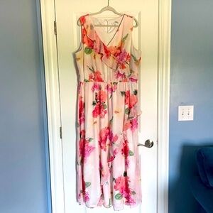 Calvin Klein Floral Dress Size 18W - some snags on inside lining at bottom of hem, shown in pictures - belt is missing