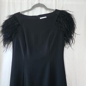 Calvin Klein Faux-Feather Sheath Dress Size 6 NWT Black Cocktail $169 Gatsby