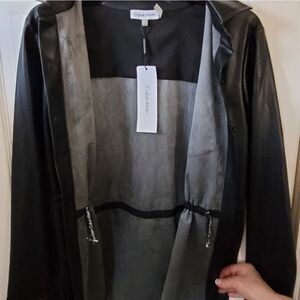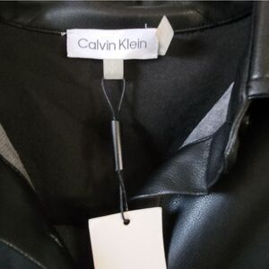 Calvin Klein Faux Leather Shirt Jacket. Size small. Two front slip pockets, spread collar, Long sleeves. Polyester lining. Button front. NWT. SUMMER SALE ☀️ FINAL SALE