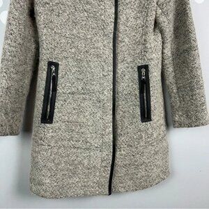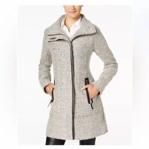 Calvin Klein Faux-Leather-Trim Asymmetrical Walker Coat Size XS