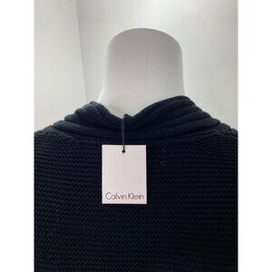 Calvin Klein Fisherman Cable Knit Sweater Men XL Chunky V Neck Black Pullover