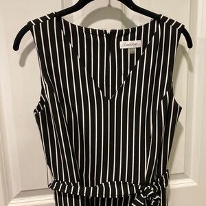Calvin Klein Fit & Flare Striped V Neck Midi Dress EUC