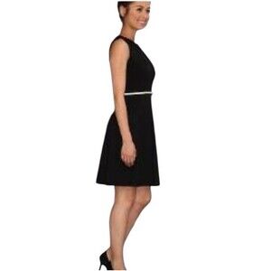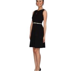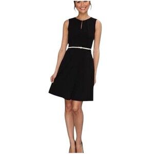 Calvin Klein Flare Dress Women's Small Keyhole Front Sleeveless Black (NO BELT)