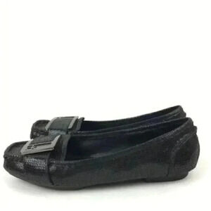 Calvin Klein Womens Flats Size 6.5 Meranda Black Leather Snakeskin Print buckle Loafers