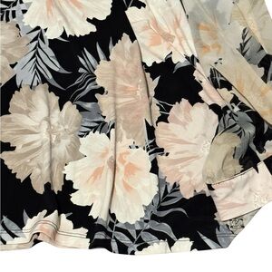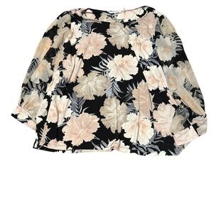 Calvin Klein Floral Blouse Semi Sheer 3/4 Sleeves Black and Cream Size 2X
