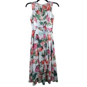 Calvin Klein Floral Chiffon High Low Dress Women's 6 Romantic Feminine Flowy