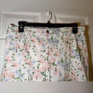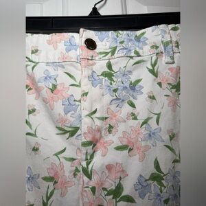 Calvin Klein Floral Cotton Twill Pants Size 12 Blue Pink Soft