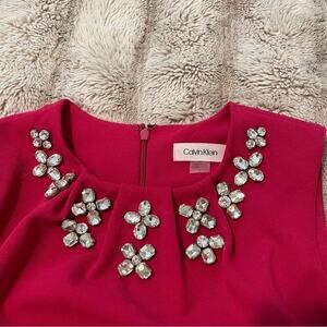 Calvin Klein Floral Gem Dark Pink Sheath Dress
