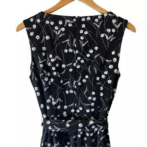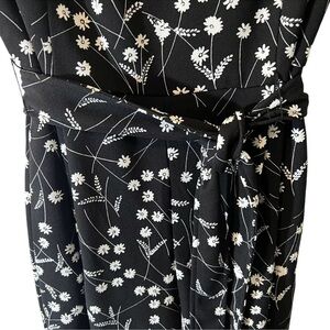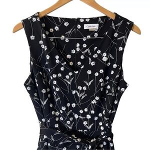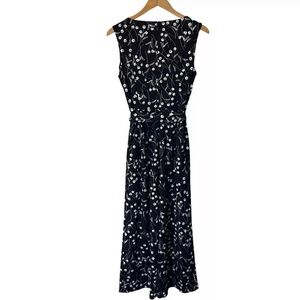 Calvin Klein Floral Jumpsuit Size 12 Black and White Sleeveless Floral Waist Tie