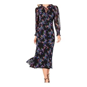 Calvin Klein Floral Maxi Dress Long Sleeve Black