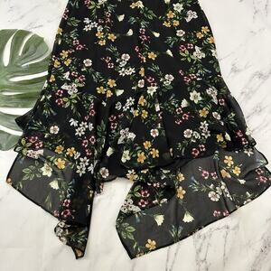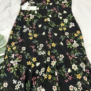 Calvin Klein Floral Midi Dress Size 10 New Black Green Flutter Hem Shift