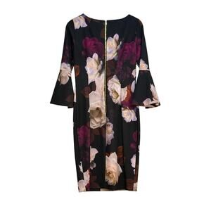 Make a statement in this stunning Calvin Klein floral print sheath dress! The beautiful floral design and flattering bell sleeves make it perfect for any special occasion or a chic day out. This dress is in excellent condition and ready to turn heads. Don't miss your chance to add this stylish piece to your wardrobe!