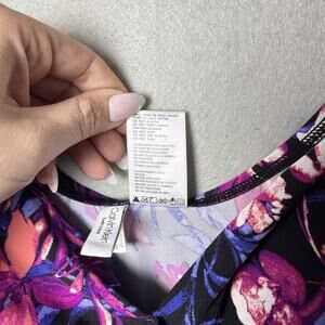 Keywords: Calvin Klein swimsuit, floral print bathing suit, women’s size 16 swimwear, pink and black one piece, designer swimwear, beach vacation pool suit