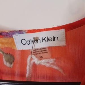 Calvin Klein Chiffon Floral Surplice Neckline Wrap Style Midi Dress