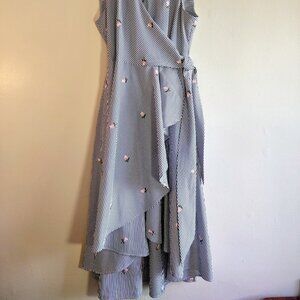Calvin Klein Floral & Stripe Wrap Dress Flowy Hi-Low Hem Size 8 Pockets