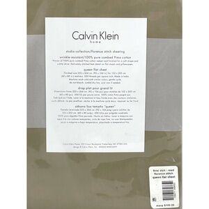 Calvin Klein Florence Stitch 500 Thread Count QUEEN Flat Sheet REED