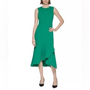 Calvin Klein Flounce Hem Midi Sheath Dress Green Size 10