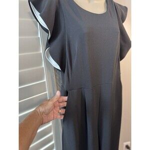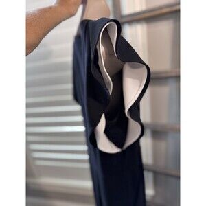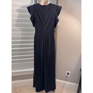 This Calvin Klein Flutter Sleeve Black White Wide Leg Jumpsuit in size 10 is a versatile and stylish piece perfect for various occasions. The jumpsuit features a flattering round neckline, zip closure, and belt for a tailored fit. Made from a stretchy polyester and spandex blend, it is suitable for all seasons and includes pockets for added convenience. The sleeveless design with flutter sleeves adds a touch of elegance, while the wide-leg silhouette offers a comfortable and on-trend look. Perfect for weddings, parties, or even formal events, this jumpsuit is a timeless and classic addition to any wardrobe.