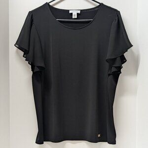 Calvin Klein Flutter Sleeve Blouse in Black