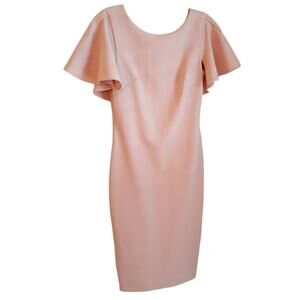Calvin Klein Flutter Sleeve Sheath Dress Women's Size 2 Light Pink Lined A-Line Knee Length