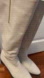 Calvin Klein soft pebbles leather white knee high boots. Low heels and black rubber soles. Side zipper, comfort fit with gold Calvin Klein nameplate detail. Soft leather is in great condition with just a few tiny scuff marks. (See pictures) Gogo, winter whites, luxury 60s styling. Style with western, mod, mini skirts, maxi skirts, culottes, or denim, and cutoffs.