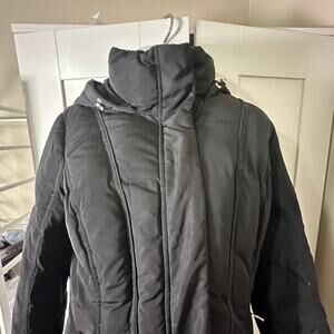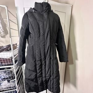 Keywords: Calvin Klein, Puffer Jacket, Down Coat, Leopard Print Lining, Winter Coat, Full Length Jacket, Duck Down Jacket, Waterfowl Feather Fill, Black Puffer, Women’s Winter Coat, Stylish Warm Coat, Size Small, Calvin Klein Outerwear, Cold Weather Fashion