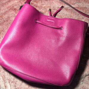 Calvin Klein leather purse bag. Fuscia color. Arm strap. Bag size 13x15 inches. Excellent condition. Super deal here.