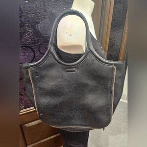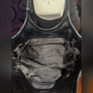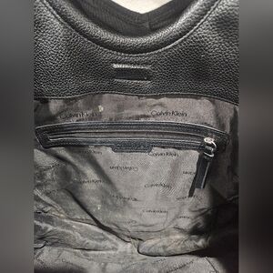 Calvin Klein Gabrianna Novelty Slim Side Zip Tote/ Book Bag Black Vegan Leather