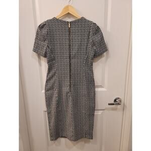 Calvin Klein Geometric Black and White Sheath Dress with Puff Shoulders