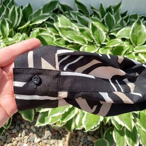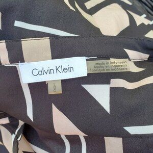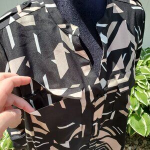 Black, pink, tan and white geometric print button down blouse by Calvin Klein, size L