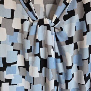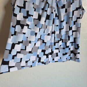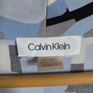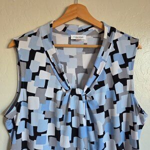 Calvin Klein Work Career Office Square Geometric Print Twist Knot V-Neck Blouse Blue/Multicolor Sleeveless Size Women's XL