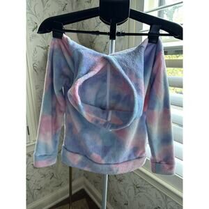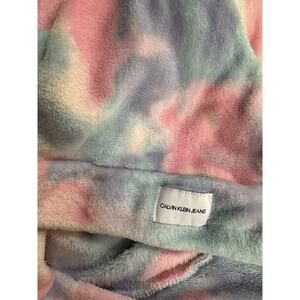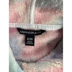 Calvin Klein Girls Blue Pink & White Fleece Tie Dye Hoodie Pullover Sz S 7/8
