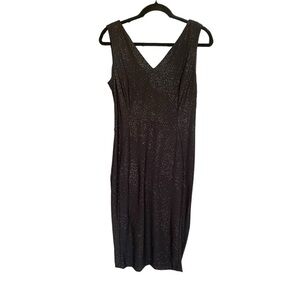 Calvin Klein Glitter Knit Sheath V Neck Black Midi Dress 6 NWT