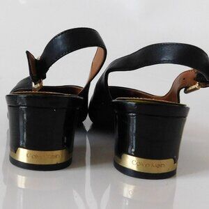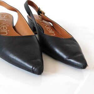 Calvin Klein Glorianne Black Leather Slingback Pointed Toe Shoes Block 2" Heel