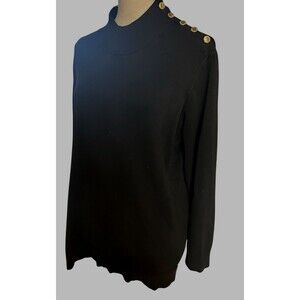 Calvin Klein Gold Accent Buttons Black Knit Long Sleeve Sweater Women's Size XL