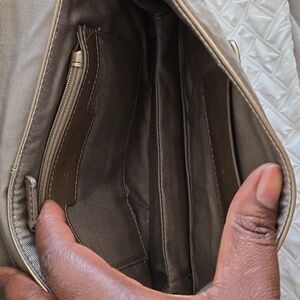 has some scratches at the back and corners. i would have said its patent leather but it also feels a little plasticy