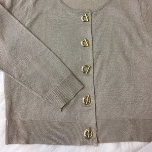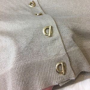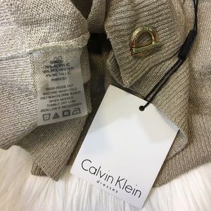 Calvin Klein Gold Button Down Light Weight Sweater. Beautiful sparkly gold thin sweater. Brand new with tags size medium. Approximate measurements: length 18.5" armpit to armpit 18" shoulders 14" Sleeve 19". Very classy
