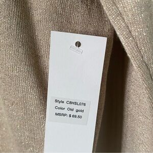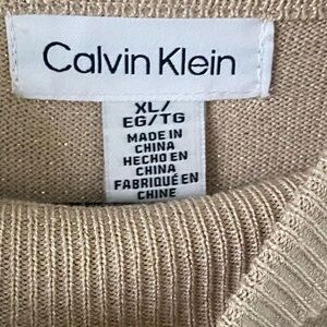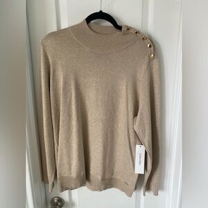 Elegant gold button sweater by Calvin Klein. Features a shimmering gold color. Perfect for a stylish look.